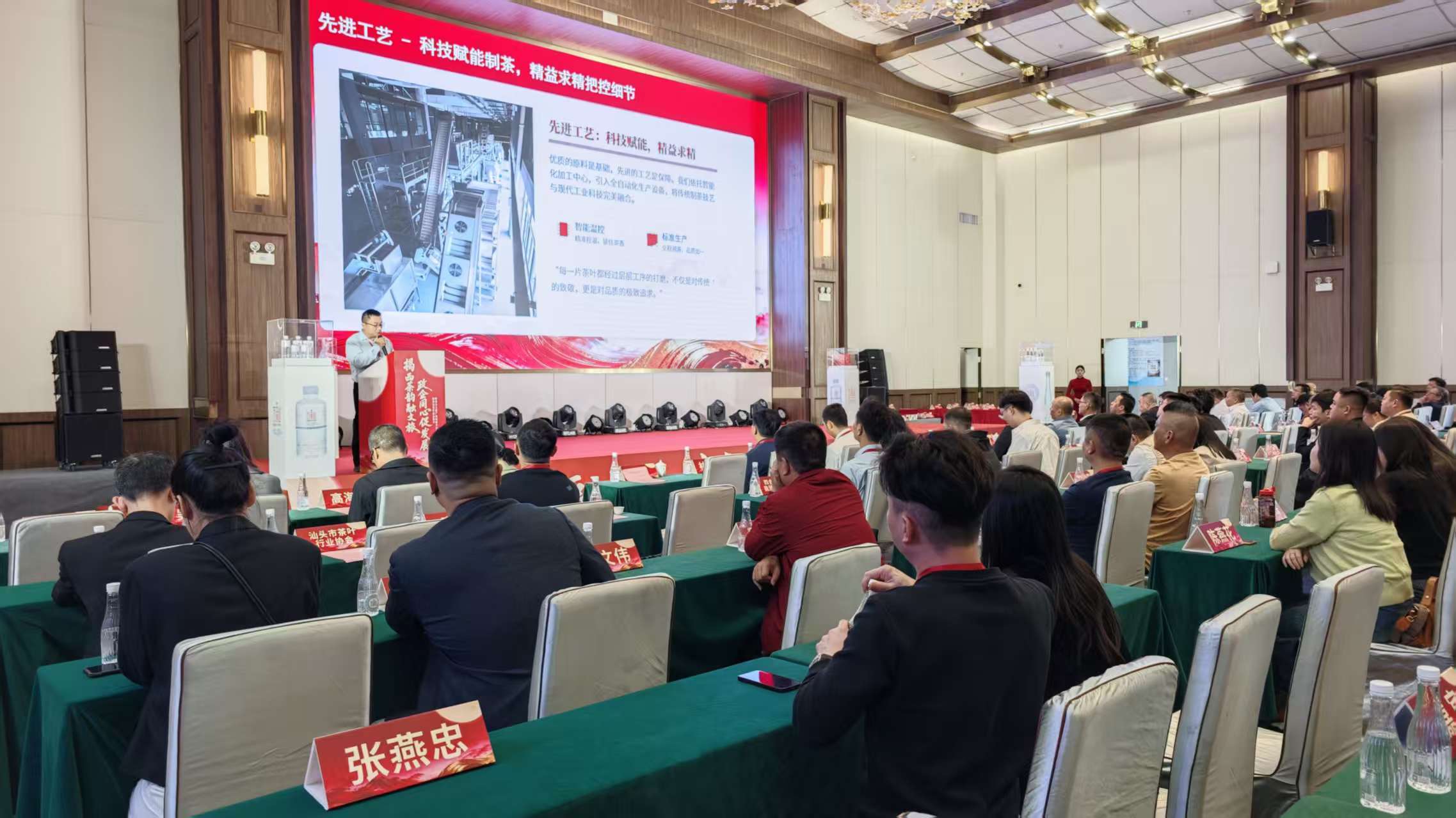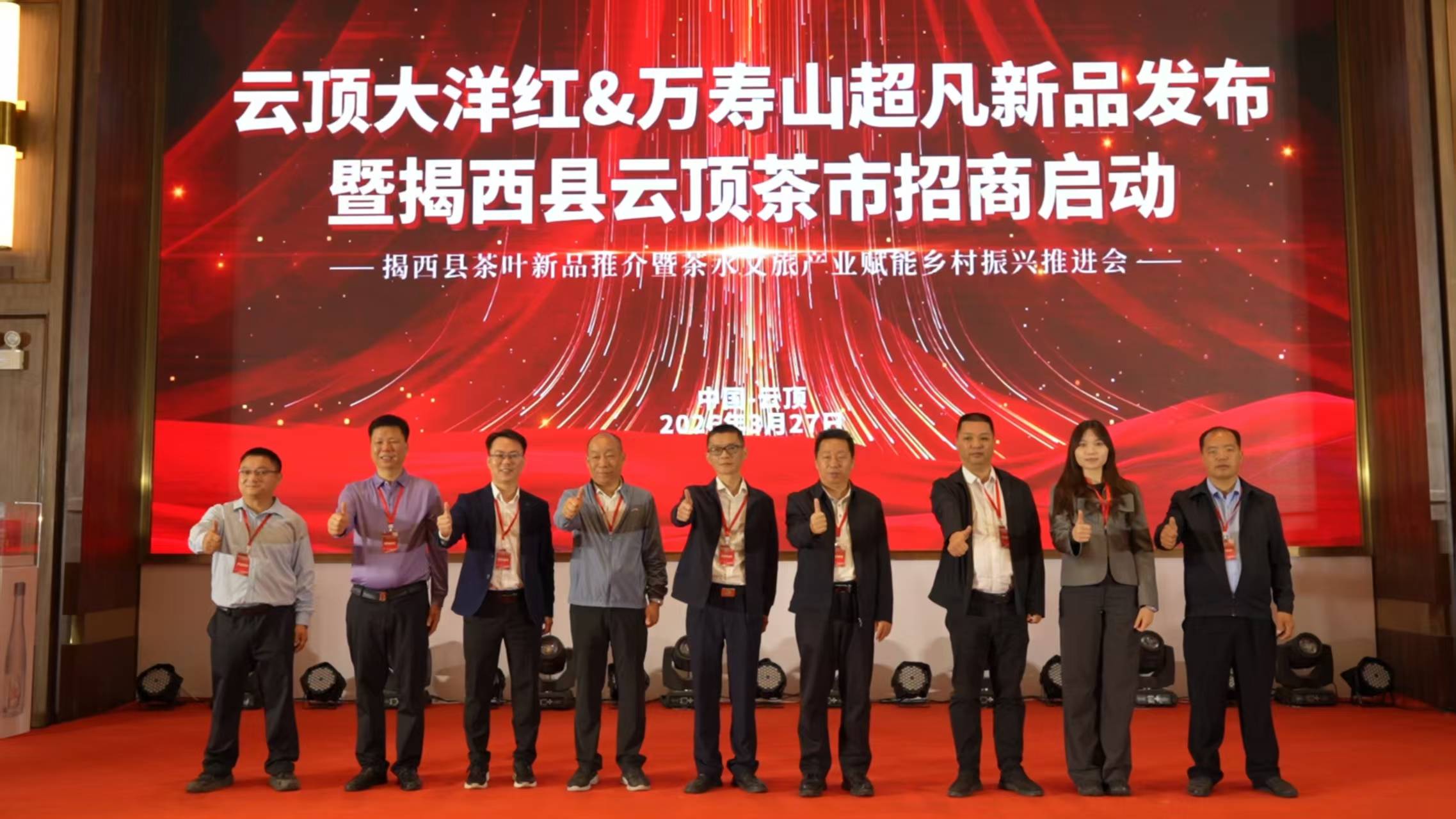 活动现场首先播放的宣传片《因茶兴业,因茶致富——揭西县茶叶省级现代农业产业园》,生动展现了揭西茶产业在“十五五”规划和“百县千镇万村高质量发展工程”推动下的发展成果。现场发布了“大洋红”茶叶、万寿山天然含钒超凡系列6.3L矿泉水三款新品,展现了揭西茶产业的创新成果。“大洋红”茶叶产自海拔800米以上高山,昼夜温差大、常年云雾滋养、富含20多种有益于身体健康的微量元素及营养成分的红黄壤等条件造就茶叶肥厚鲜爽的天然基底,同时,融合非遗炒青技艺与现代创新工艺,与省级科研所合作确保品质,兼具生态优势与匠心品质。万寿山天然含钒超凡系列6.3L矿泉水源自深层天然水源,富含多种人体所需矿物质,采用先进净化工艺,大容量和精美环保包装设计,兼顾了健康、实用和美观。